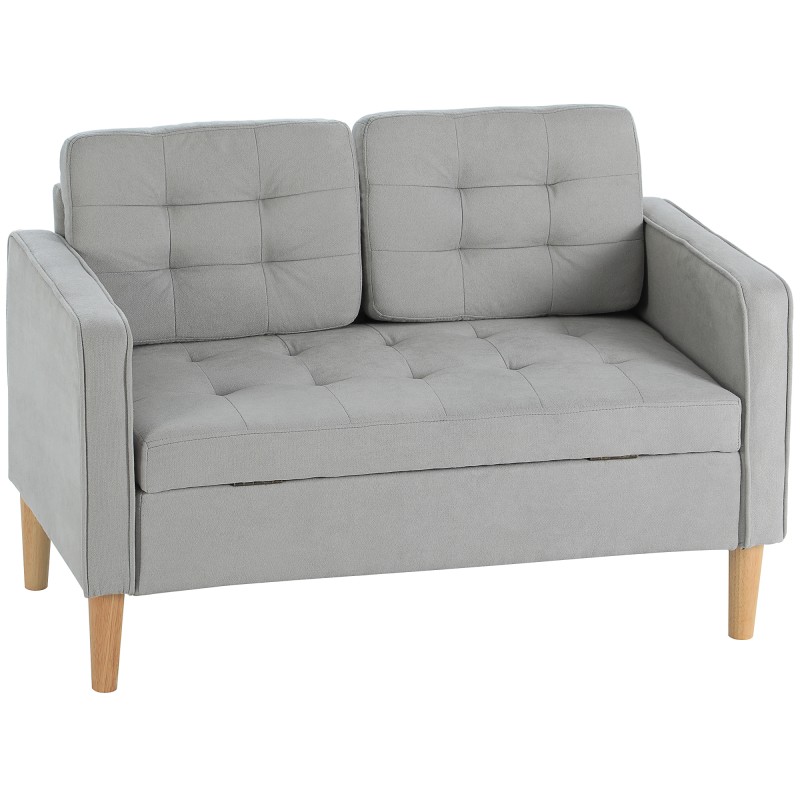 2-istuttava sohva säilytystilalla, samettimainen verhoilu, puujalat, 117 x 62 x 78 cm, harmaa