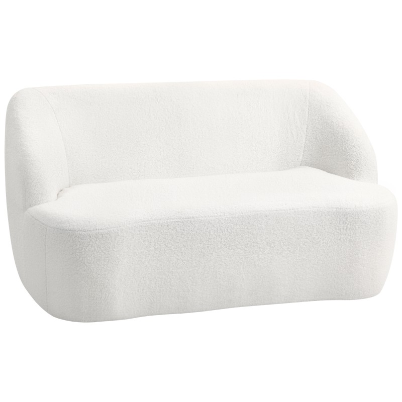 2-istuttava sohva olohuoneeseen, fleece-verhoilu, kaareva muoto, 142 cm, kermanvalkoinen