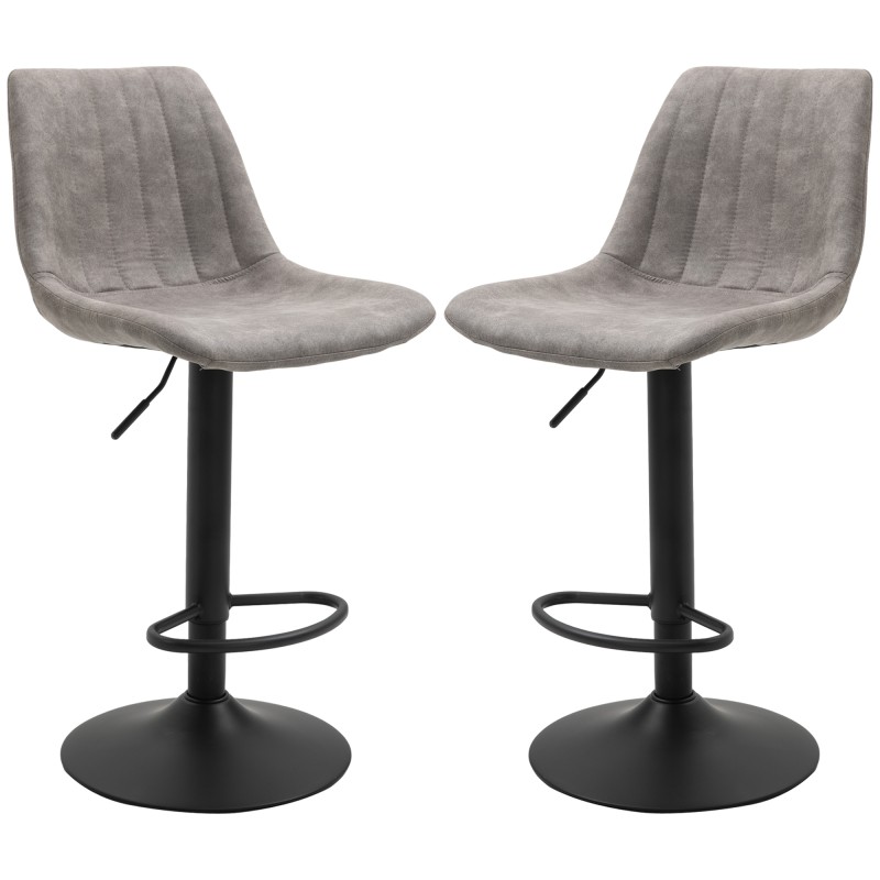 2 kpl baarituoli setti retrotyyli, mikrokuitu, korkeussäädettävä kaasujousella, harmaa/musta