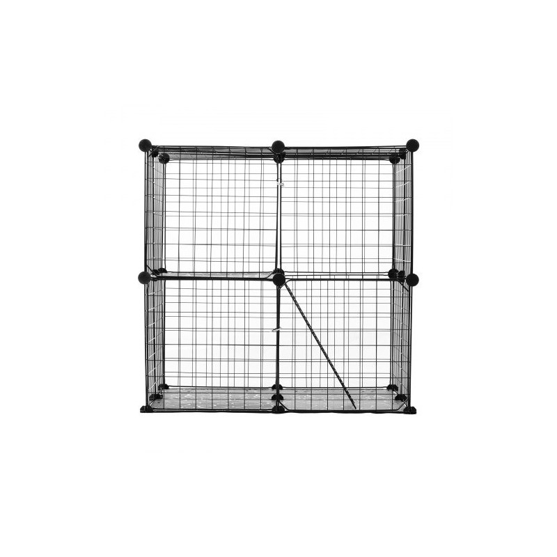Jokainen paneeli yhdistetään metalliliittimillä ja nippusiteillä, mikä tekee kokoamisesta ja purkamisesta yksinkertaista. Asennus onnistuu nopeasti ilman työkaluja. Kun häkkiä ei tarvita, sen voi taittaa kokoon ja säilyttää tilaa säästäen tai ottaa mukaan matkalle.