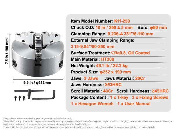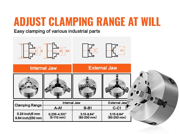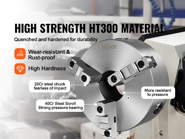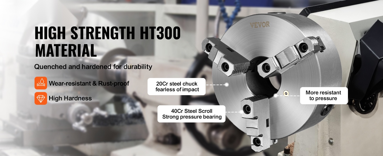 6'' 3-leukainen sorvin istukka on valmistettu lujasta HT300-materiaalista, joka kestää hyvin puristusta ja tarjoaa pitkän käyttöiän. Mukana on sekä sisä- että ulkoleuat, joilla voidaan kiinnittää myös suurempia työkappaleita. Itseitsentyyttävä toiminto vähentää tarvetta toistuvalle keskityksen säädölle.