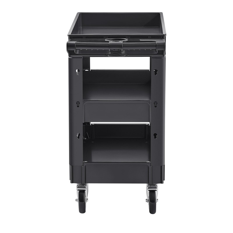 3-tasoinen polypropeeninen apukärry 550 paunan kantavuus 5-tuumaiset kääntyvät pyörät joista kaksi jarrullista
