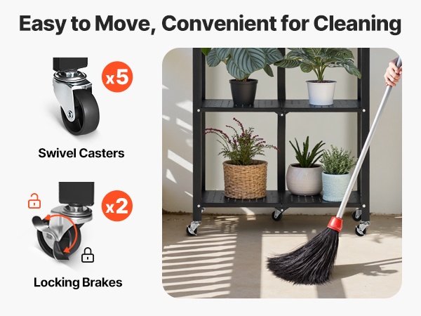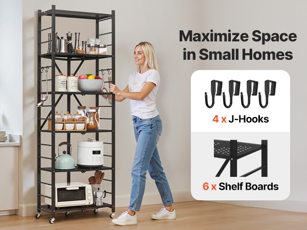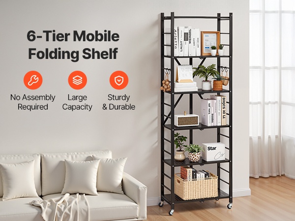 Hyllyä voi liikutella huoneesta toiseen, ja jarrulliset pyörät lukitaan jalalla yhdellä painalluksella. Kun hyllyä ei tarvita, sen saa nopeasti kasaan, jolloin se mahtuu pieneenkin väliin ja vapauttaa tilaa.