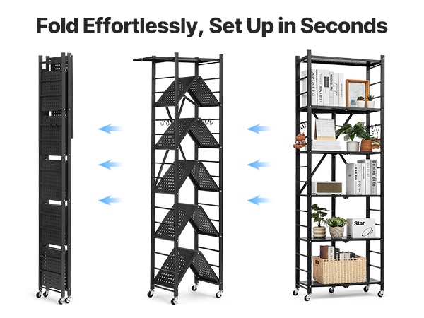 Monitasoinen taittuva hylly pitää tavarat siisteinä ja helposti löydettävissä. Se toimii hyvin esimerkiksi pesuaineiden, astioiden, elintarvikkeiden, työkalujen tai toimistotarvikkeiden säilytyksessä.
