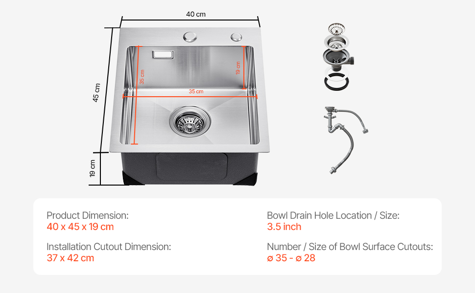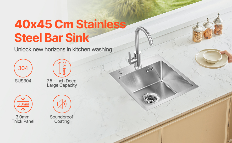 Kompakti ja käytännöllinen 40 cm ruostumattomasta teräksestä valmistettu tiskiallas, joka sopii keittiöön, apukeittiöön, vaatehuoltotilaan, baariin tai matkailuautoon. Syvä allas helpottaa isojen kattiloiden ja pannujen pesua, ja yläpuolelta asennettava rakenne tekee asennuksesta sujuvaa myös olemassa oleviin tasoihin.