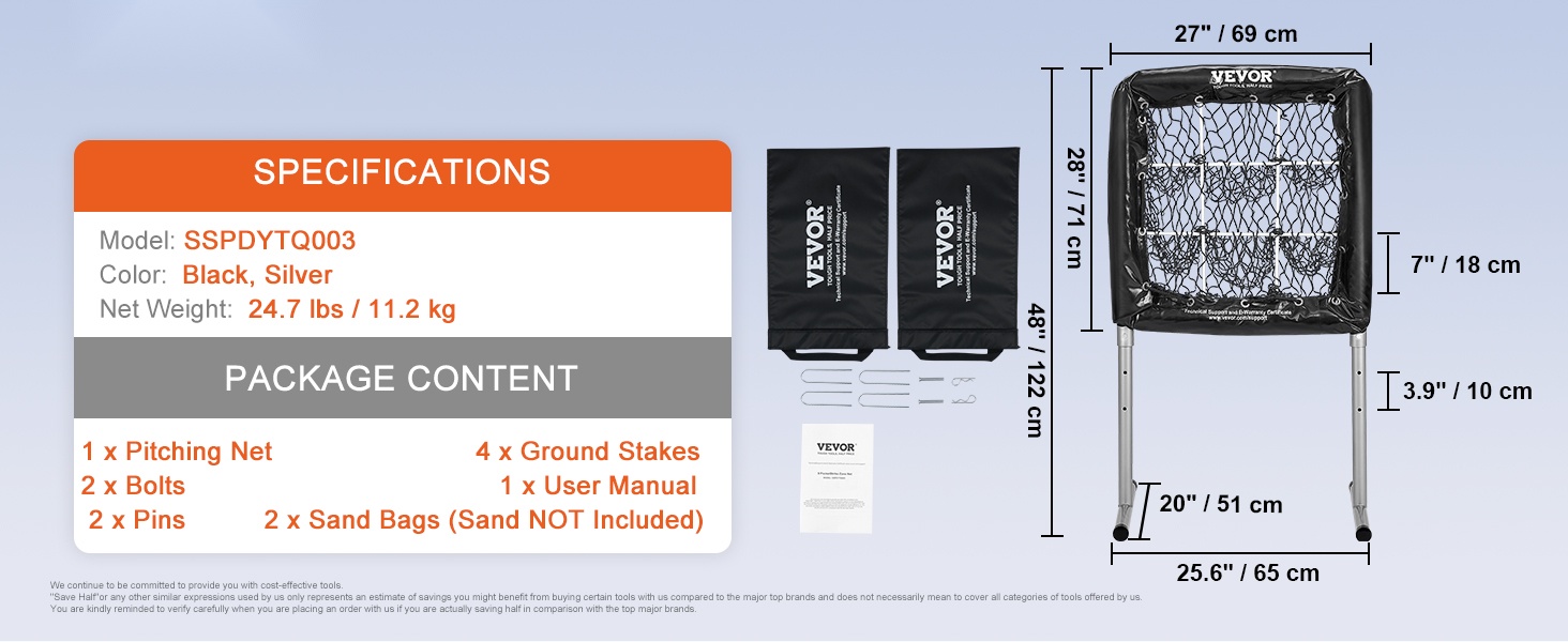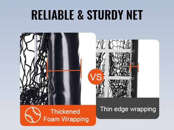 Verkon sisällä on vahva, korkean iskuvoiman palautusverkko, joka kestää nopeatkin syötöt. Tiheä ja vahva verkkomateriaali pidentää käyttöikää, ja vahvistettu teräspohja sekä pehmustettu vaahtosuoja lisäävät sekä vakautta että turvallisuutta.
