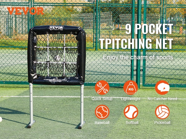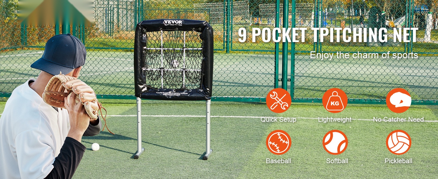 Tämä 9-aukoinen syöttöverkko on käytännöllinen apuväline syöttöharjoitteluun baseballissa ja softballissa. Ylikokoinen strike zone -alue mahdollistaa harjoittelun ilman lukkaria, ja kevyt rakenne tekee siirtämisestä ja käytöstä helppoa eri kentillä.