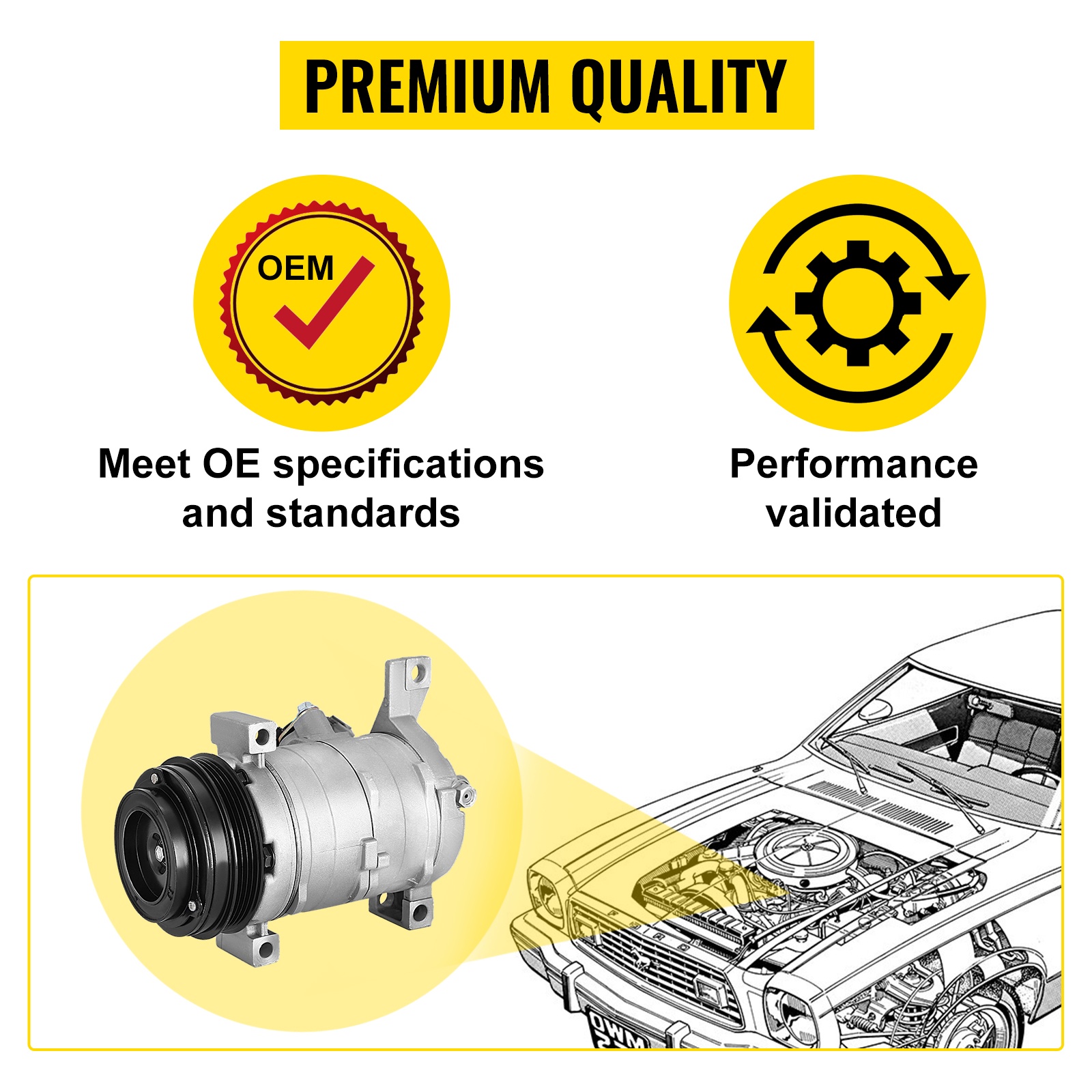 Tämä etuasennettava A/C-kompressori kytkimellä on suunniteltu 00-14 Cadillac, Chevy, GMC ja Hummer -malleihin moottorikokoille 4.8L, 5.3L, 5.7L, 6.0L, 6.2L ja 8.1. Kompressori on valmistettu kestävästä alumiiniseoksesta, se täyttää OEM-vaatimukset ja on suunniteltu pitkäikäiseen ja luotettavaan käyttöön.