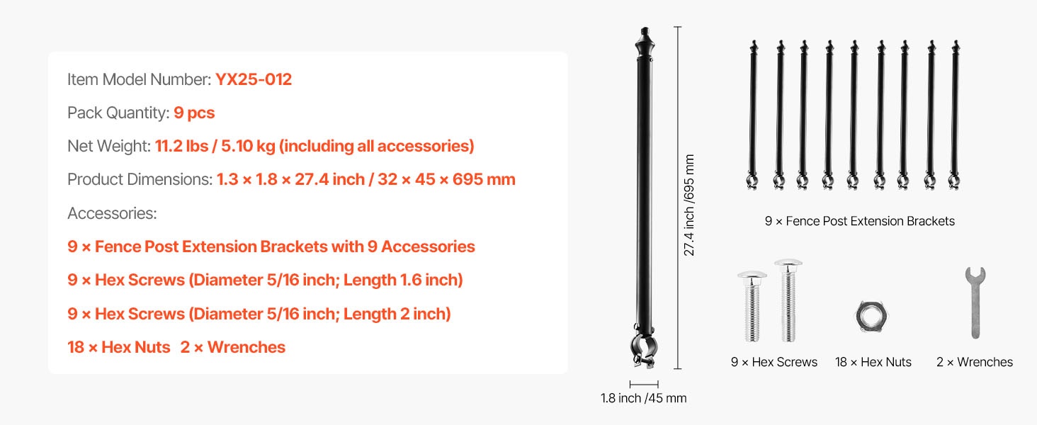 - 10 kappaleen pakkaus aitatolpan jatkovarsia, pituus 12.2 tuumaa / 310 mm