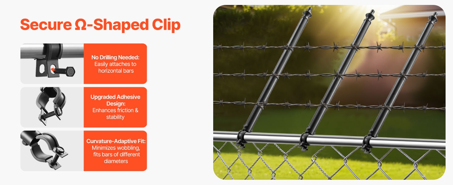 Sisäänrakennetut koukkurenkaat helpottavat verkkoaidan, piikkilangan tai valoketjujen kiinnittämistä. Uritettu muoto nopeuttaa kiinnitystä ja irrotusta, parantaen sekä turvallisuutta että käyttömukavuutta.