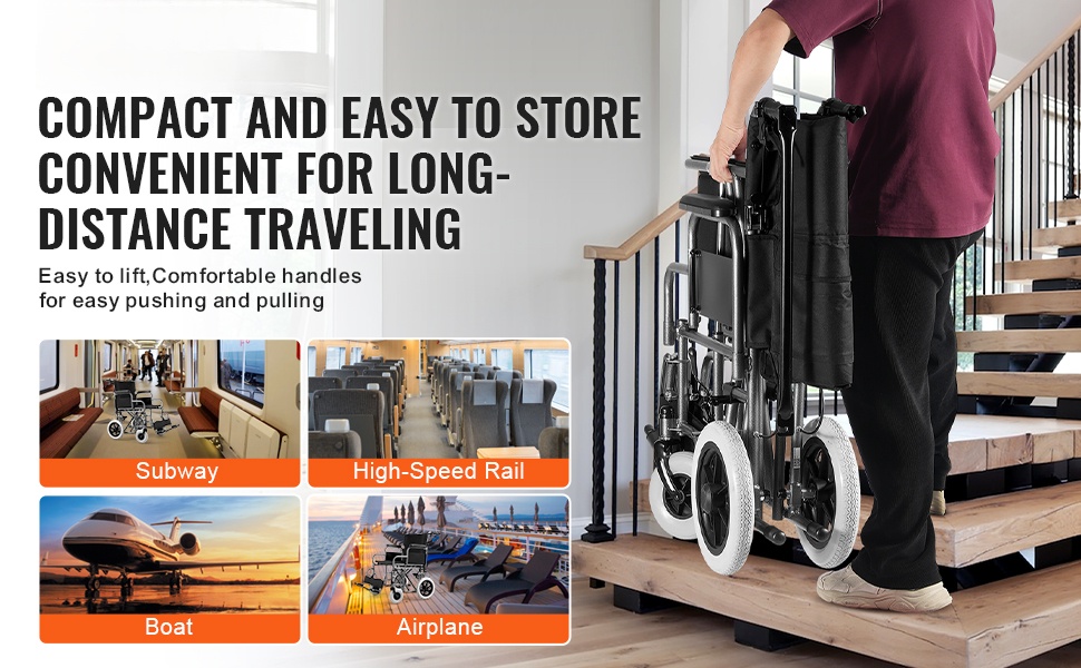 Tämä hiiliteräksinen aikuisten pyörätuoli taittuu nopeasti pieneen tilaan, mikä helpottaa kuljettamista ja säilytystä. Mukava istuin mahdollistaa pidempään istumisen ilman liiallista väsymystä, ja rakenne soveltuu monenlaisiin liikkumistilanteisiin arjessa ja matkoilla.