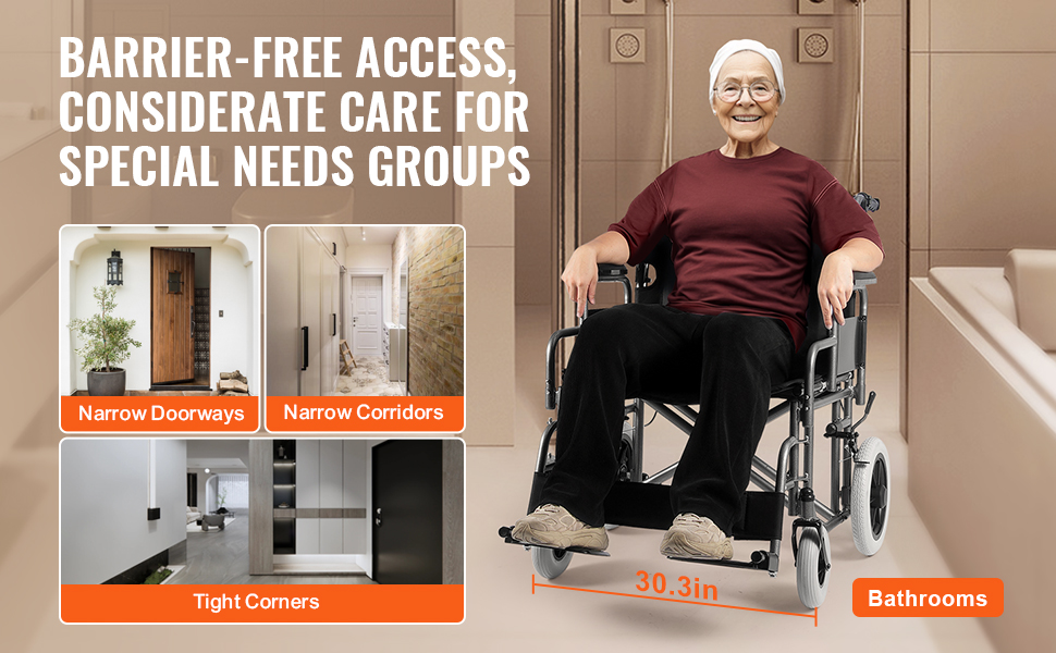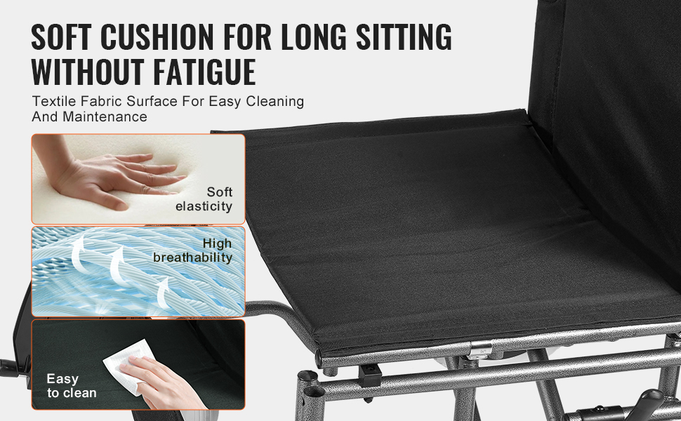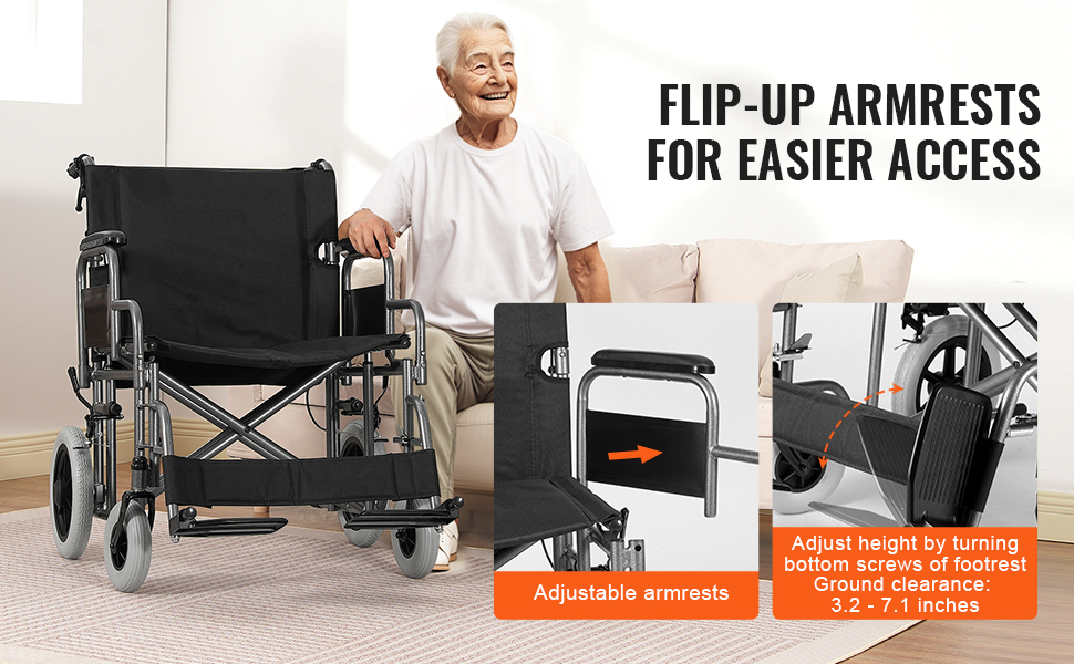 Käsinojat ja jalkatuet ovat säädettävissä, ja jalkatuen korkeus voidaan asettaa 80–180 mm väliin, mikä helpottaa nousemista ja istuutumista.