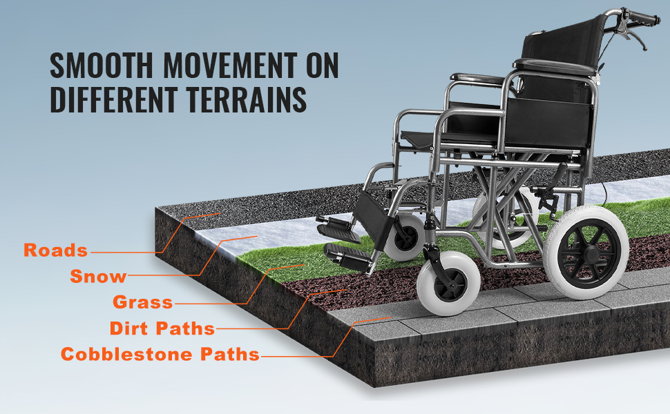 Pyörätuoli liikkuu sujuvasti erilaisilla pinnoilla, kuten tiellä, nurmella, poluilla ja mukulakivillä. Tämä tukee mahdollisimman itsenäistä liikkumista sekä ulkona että sisätiloissa, sääolosuhteet huomioiden.