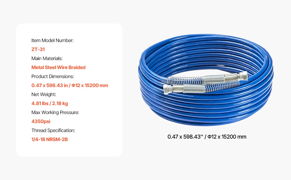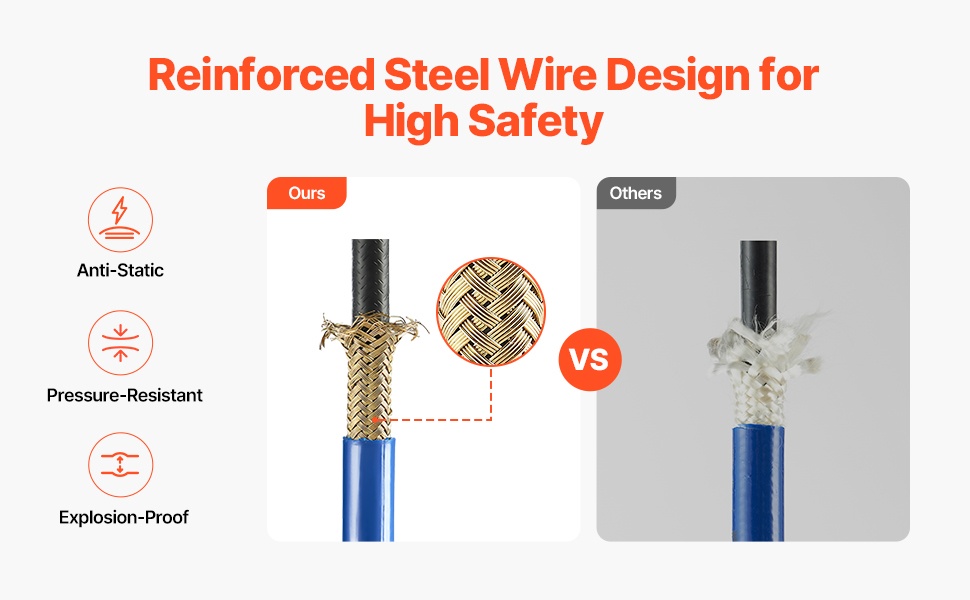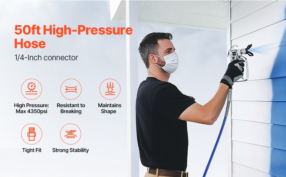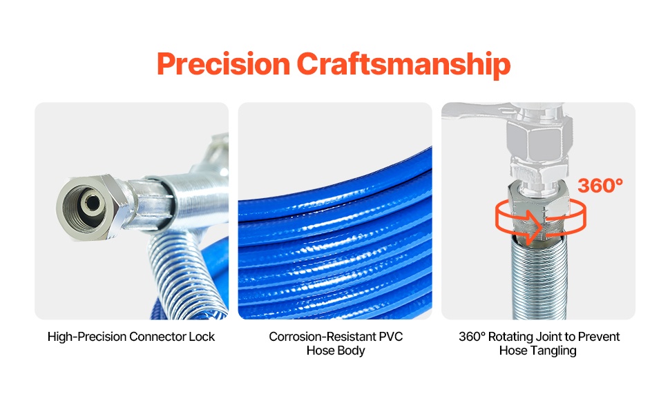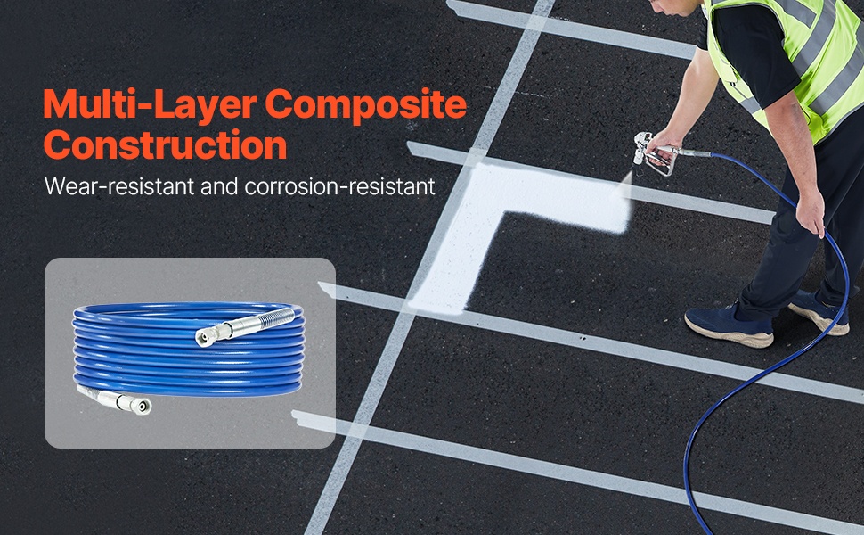 Tämä 50ft airless-maalausletku on suunniteltu tasaisiin maalaustuloksiin sekä luotettavaan paineenkestoon. Monikerroksinen teräspunosrakenne parantaa kestävyyttä ja turvallisuutta, ja joustava rakenne helpottaa työskentelyä ahtaissakin kohteissa.