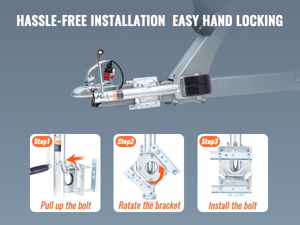 Useat säätöportaat ja 318-572 mm/12.51"-22.52" nostoalue pitävät tunkin suorassa ja helpottavat perävaunun kytkemistä ja irrottamista vetokoukusta. Tasainen korkeudensäätö ehkäisee perävaunun kallistumista ja parantaa vetomukavuutta.