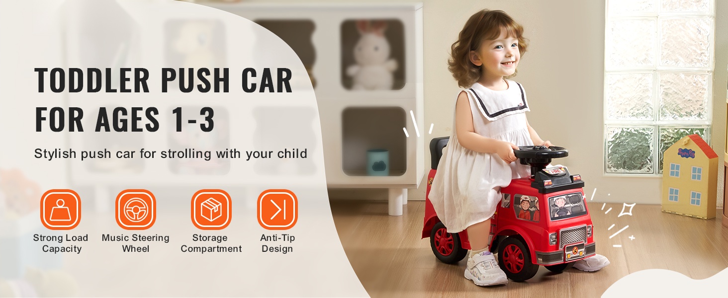 Hauska työntöauto tukee lapsen motoriikan ja lihasten kehitystä jokaisella potkulla. Sopii lapsille noin 19–36 kuukauden ikään, kun he kasvavat, tutkivat ja harjoittelevat tasapainoa.