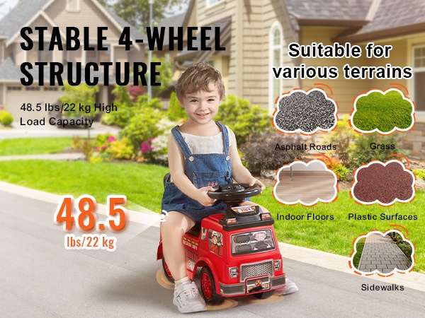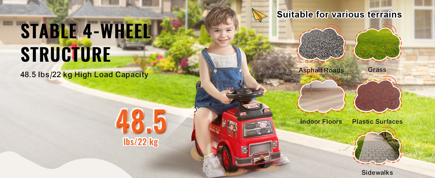 Auto muuttaa kodin, pihan tai puiston leikkinurkaksi. Liukumattomat pyörät auttavat lasta pysymään vakaana ja vähentävät lipsumista erilaisilla alustoilla.