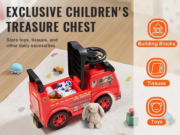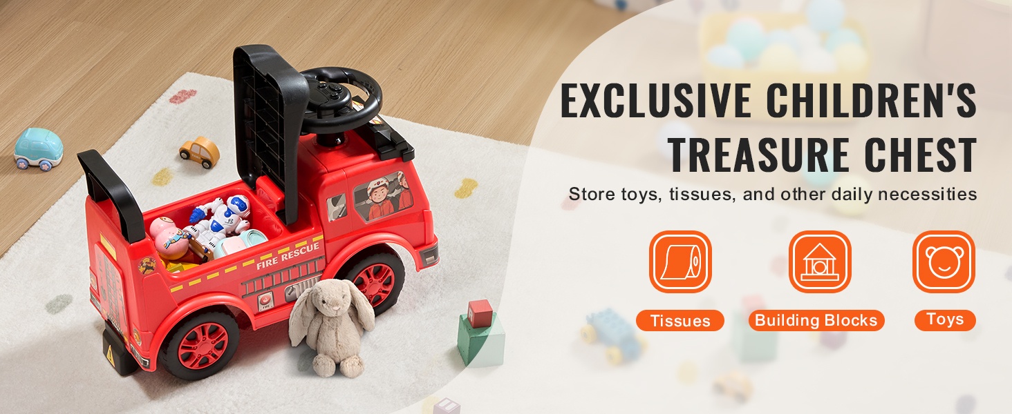 Istuimen alla oleva säilytystila sopii pienille leluille ja tavaroille. Auto on helppo nostaa ja kantaa yhdellä kädellä, joten se kulkee vaivattomasti mukana matkalla tai puistoretkellä.