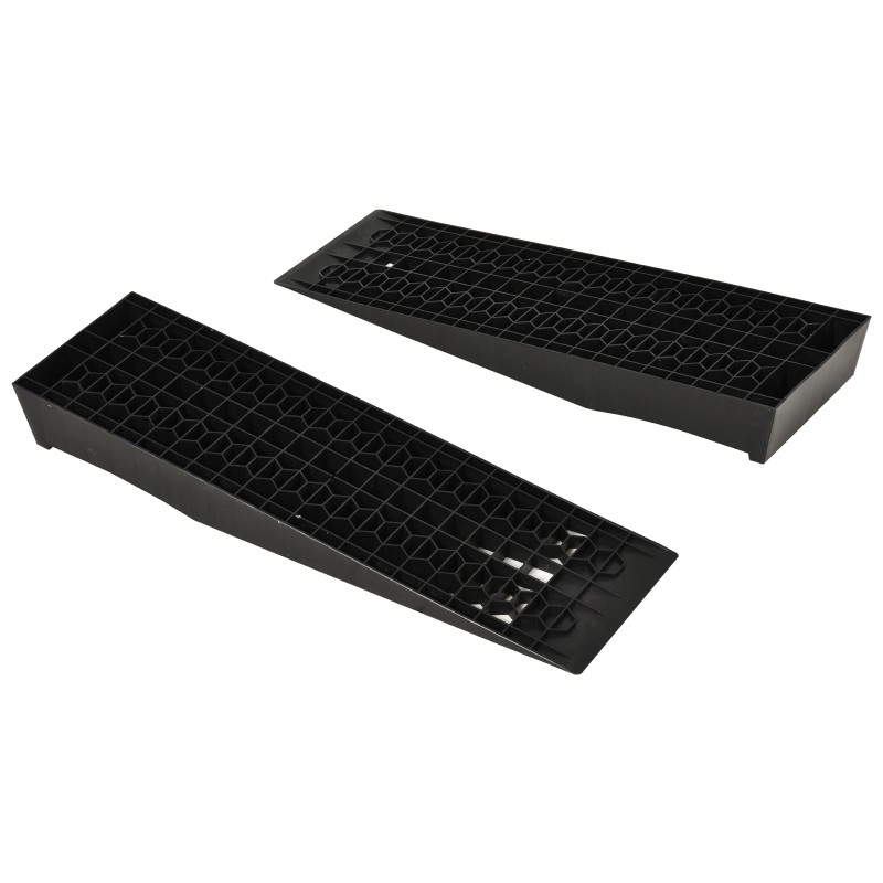 Tämä kaksiosainen ajosiltasarja helpottaa auton, SUV:n ja pikkupakun nostamista huolto- ja tarkistustöitä varten. Vankasta muovista valmistetut luiskat kestävät yhteensä jopa 3000 kg kuorman, ja niiden kuvioitu, ritilämäinen pinta parantaa pitoa ja päästää veden, lumen ja lian läpi. Voit ajaa ajoneuvosi turvallisesti ylemmäs ja saada paremman työskentelytilan auton alle ilman kallista käyntiä korjaamolla.