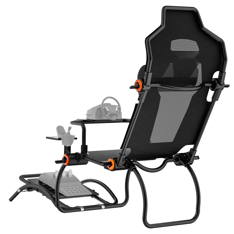 Taitettava ajosimulaattorin rattiteline tarjoaa tukevan ja säädettävän alustan kilparatille ja polkimille. Teräsrakenne pitää kokonaisuuden vakaana kovassakin ajossa, ja monipuoliset säädöt auttavat löytämään sopivan ajoasennon eri käyttäjille.