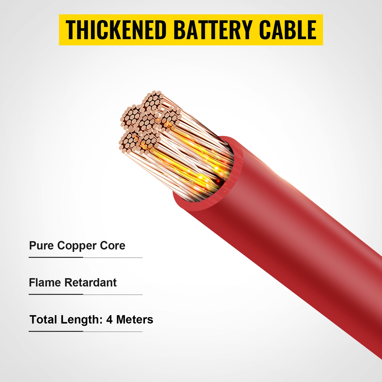 Akkujohdossa on puhdas, paloa hidastava kuparisydän, joka kestää pitkää käyttöä. Neljän punaisen johdon kokonaispituus on 2 metriä.