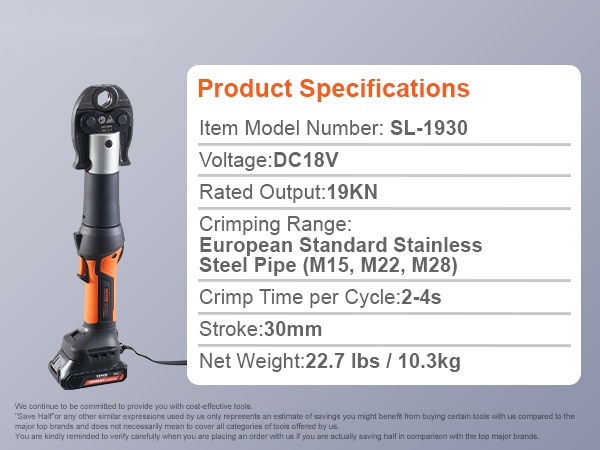 Litiumakulla toimiva sähköinen puristustyökalu varmoihin ja tiiviisiin putkiliitoksiin. Soveltuu erityisesti kupariputkien ja ruostumattomien teräsputkien puristukseen. Verrattuna käsikäyttöisiin malleihin työkalu säästää aikaa ja vaivaa ja antaa paremman hallinnan työhön.