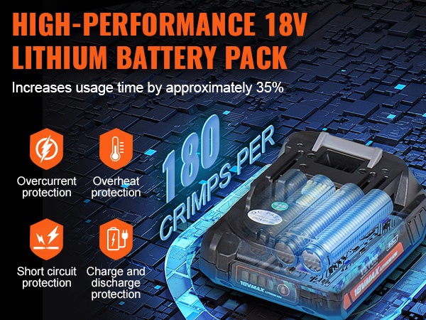 - Mukana 2 kpl 18V 2.0Ah akkupaketteja – jopa 180 puristusta yhdellä täyteen ladatulla akulla.