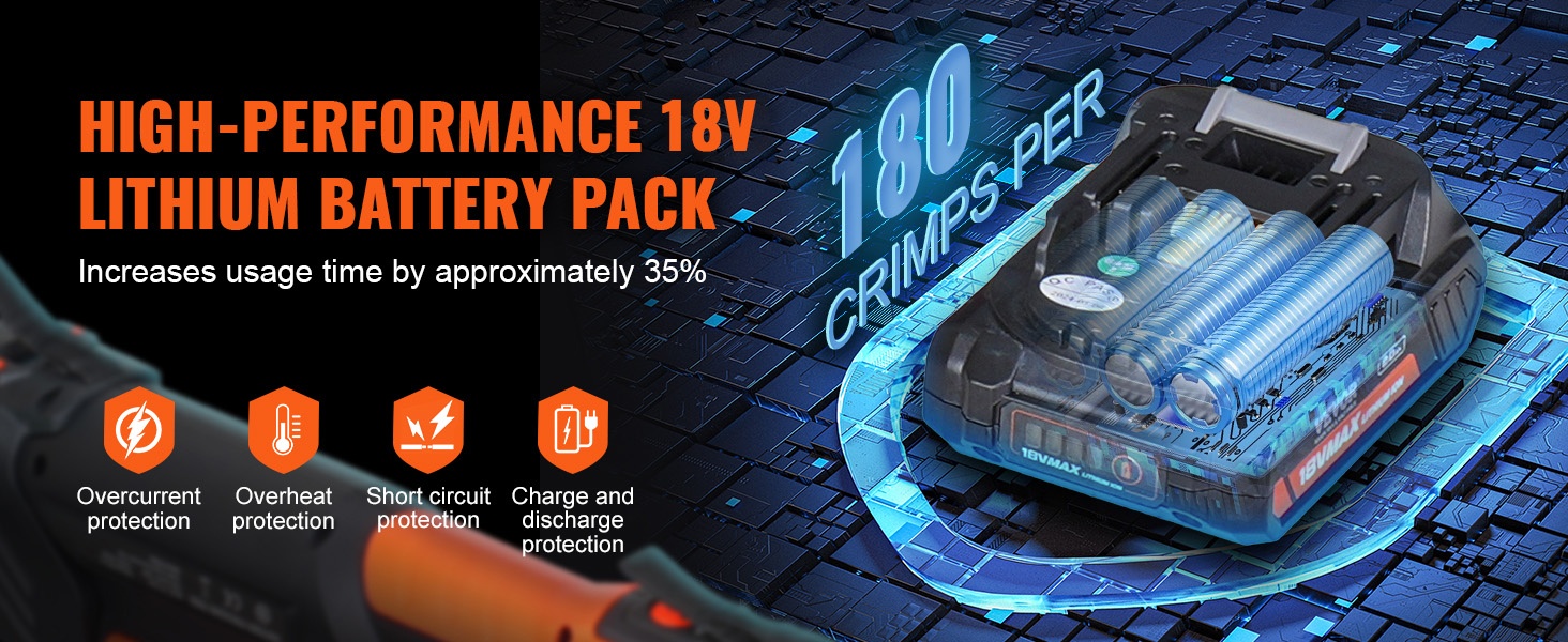 Pakkaus sisältää 2 akkupakkausta, joiden avulla voidaan tehdä jopa 180 puristusta yhtä täyttä latausta kohden. Tämä vähentää lataustaukojen tarvetta ja tukee pidempiä yhtäjaksoisia työrupeamia.