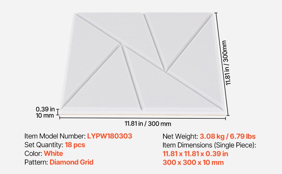 - Mitat (yksi paneeli): 400 x 300 x 10 mm / 15.75 x 11.81 x 0.39 tuumaa