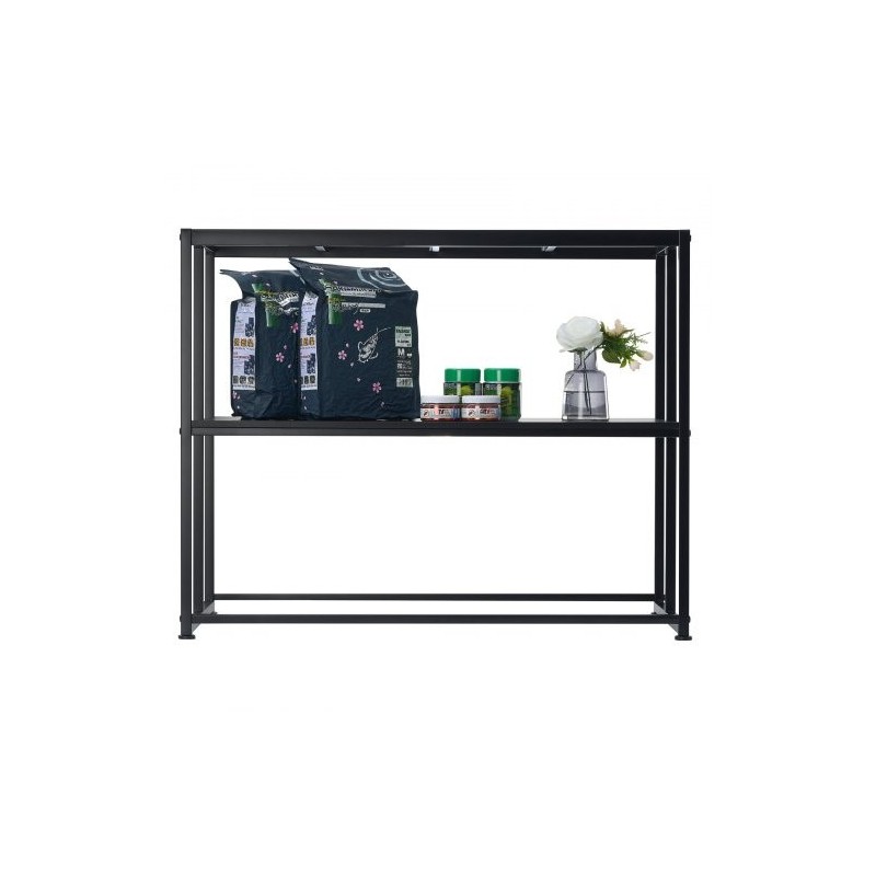 Tämä kotikäyttöön suunniteltu akvaariojalusta sopii enintään 40-gallonin akvaariolle. Tukeva Q195-teräsrunko kantaa jopa 335 lbs / 152 kg. Kaksitasoinen hyllyrakenne tarjoaa runsaasti säilytystilaa suodattimille, tarvikkeille ja muille välineille.