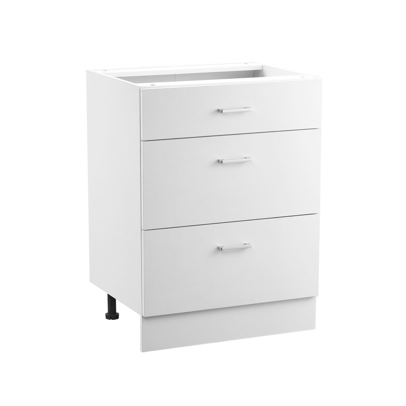 Tämä valkoinen shaker-tyylinen alakaappi sopii hyvin kotiin tai toimistoon, kun tarvitset siistin ja selkeän säilytysratkaisun. Kaapissa on 3 laatikkoa, pehmeästi sulkeutuvat kiskot ja se toimitetaan valmiina koottavaksi.