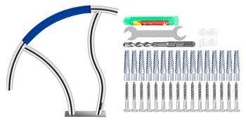 Uima-altaan kaide ruostumattomasta teräksestä valmiiksi koottu kolmiportaisella sinisellä otteella