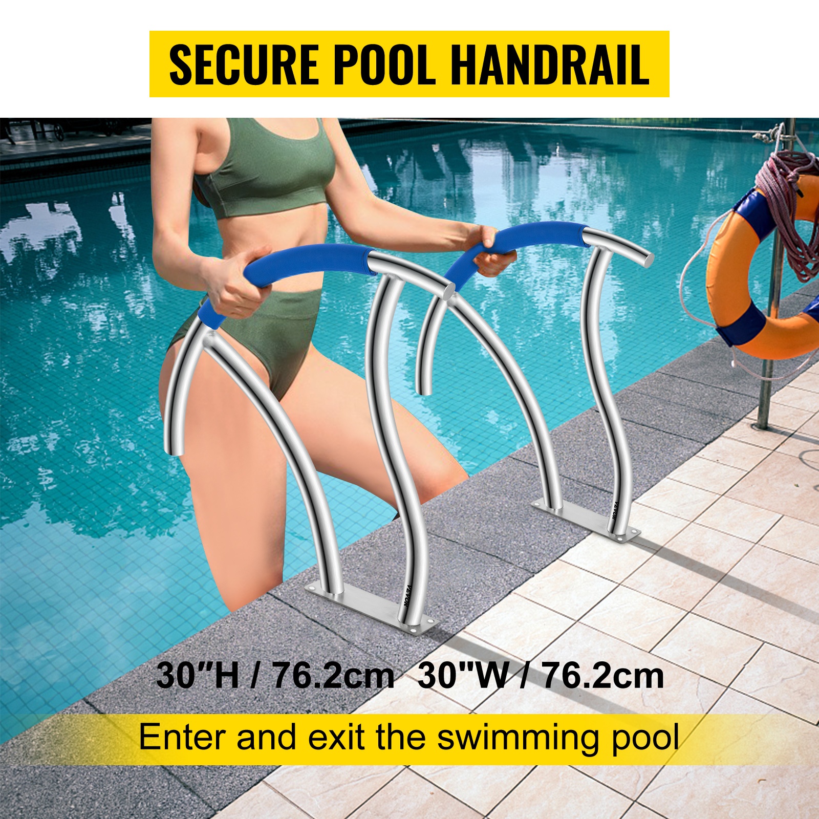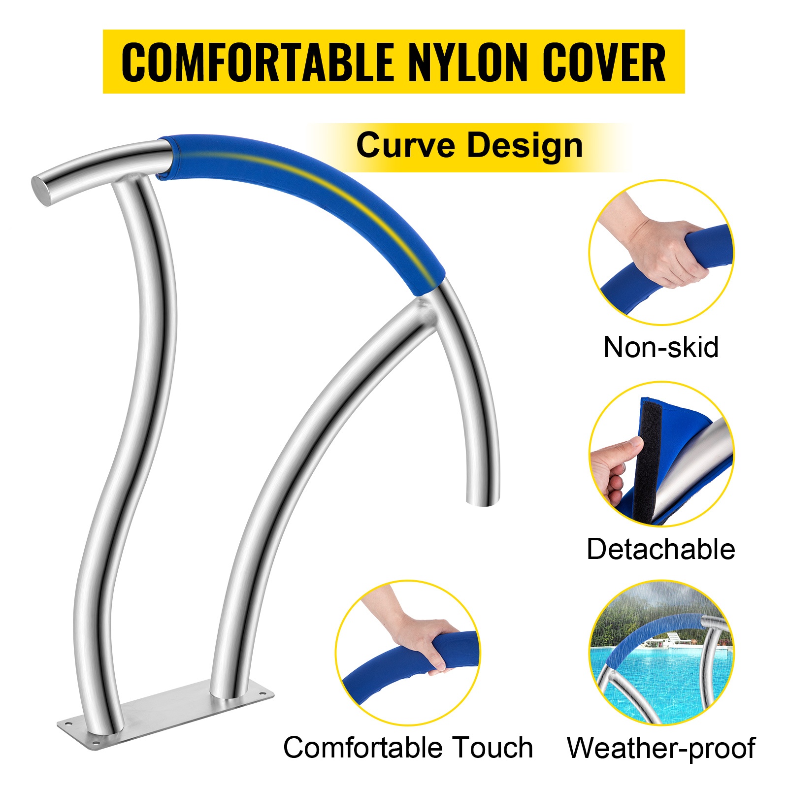 Ruostumattomasta 304-teräksestä valmistettu uima-altaan kaide helpottaa turvallista altaaseen menoa ja sieltä poistumista. Kaiteessa on tukeva pohjalevy ja sileä pinta, ja mukana tuleva sininen 4 ft (jalkaa) liukuesteellinen kahvasuoja lisää käyttömukavuutta. Kaide sopii upotettuihin uima-altaisiin, porealtaisiin ja muihin vastaaviin kohteisiin.