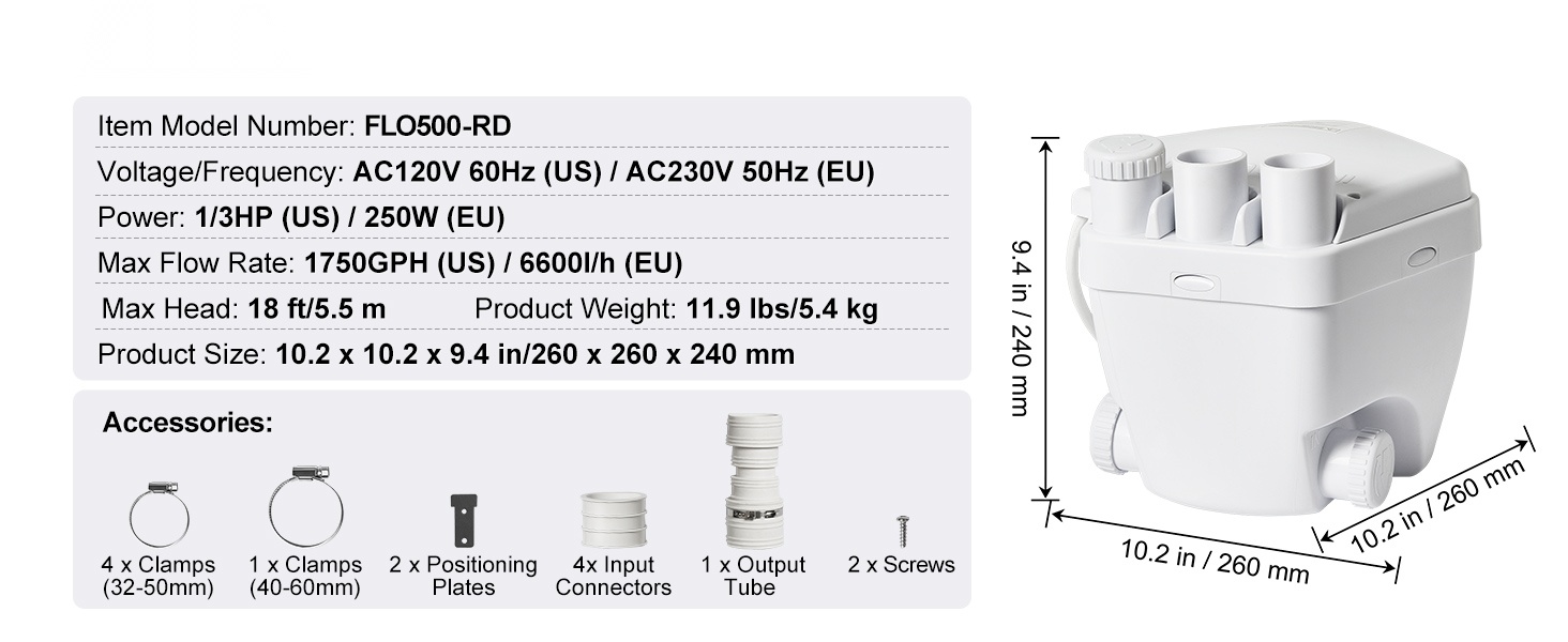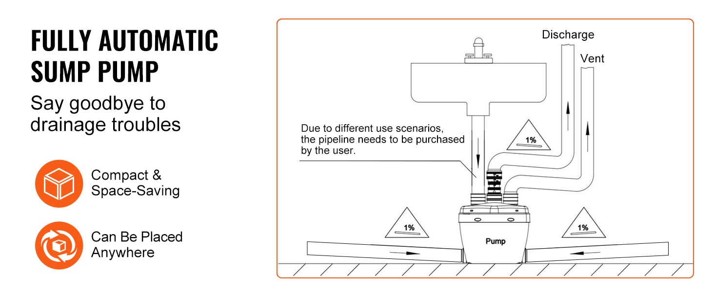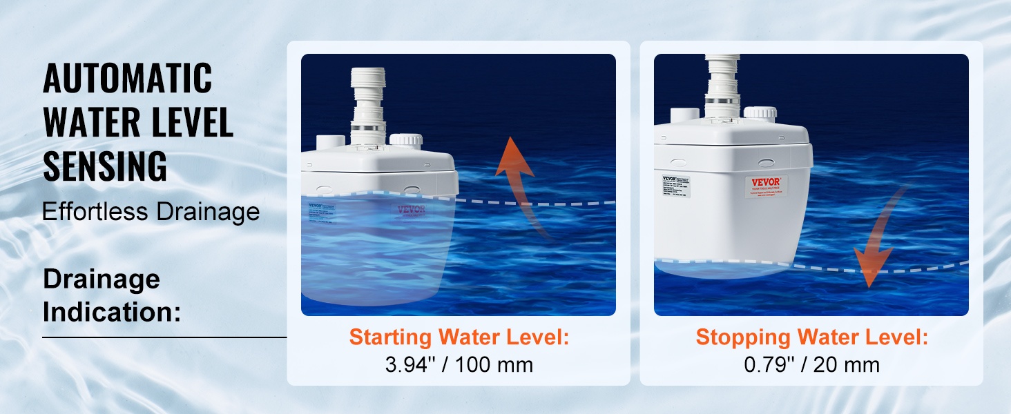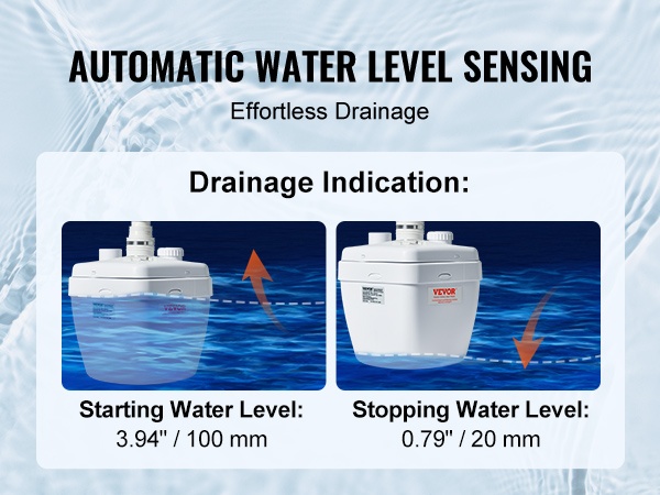 - Täysin automaattinen toiminta – käynnistyy ja pysähtyy vedenpinnan mukaan, ihanteellinen matalalle sijoitettuihin tiloihin.