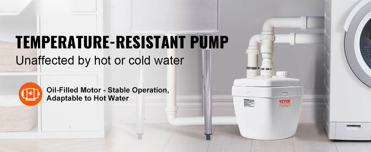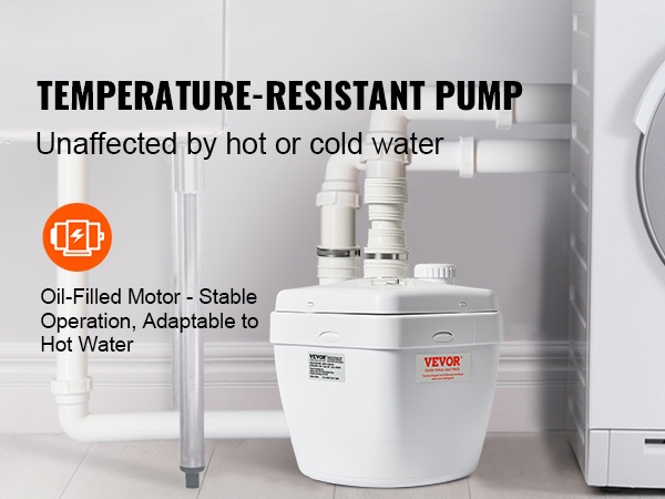 Pumppu käsittelee luotettavasti sekä kuumaa että kylmää vettä, ja öljytäytteinen moottori tukee vakaata toimintaa eri lämpötiloissa.