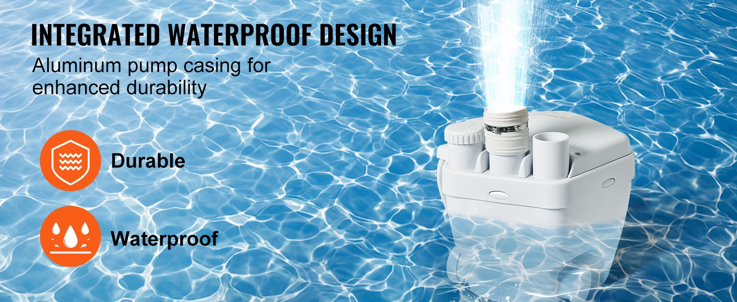 Integroitu, vesitiivis moottorikotelo ehkäisee veden pääsyä moottorin sisään ja vähentää vikaantumisriskiä. Vankka valualumiininen pumppurunko parantaa mekaanista kestävyyttä ja korroosionkestoa, mikä tekee pumpusta sopivan pitkäaikaiseen käyttöön sisätiloissa.