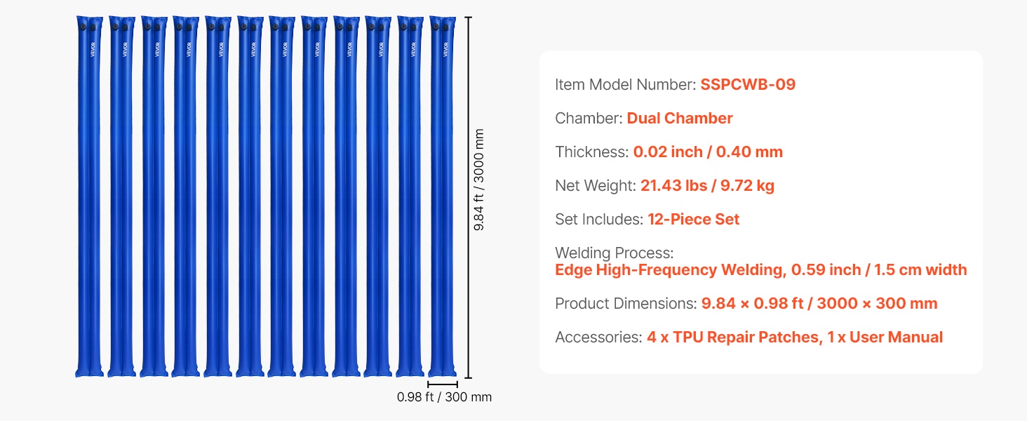 Altaan suojapeitteen PVC vesipussit 12 kpl kaksikammioiset 2380×300 mm