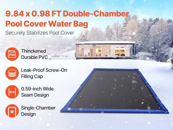 Altaan suojapeitteen vesipussit auttavat pitämään maauima-altaan peitteen paikoillaan talvikauden aikana. Vesipussit estävät lehtien ja roskien pääsyn altaaseen, vähentävät puhdistustarvetta ja suojaavat peitettä kovassakin säässä.