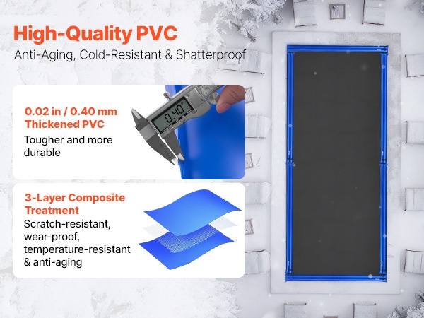 - Kestävä 0.40 mm paksu PVC kestää ulkokäytössä vuodesta toiseen