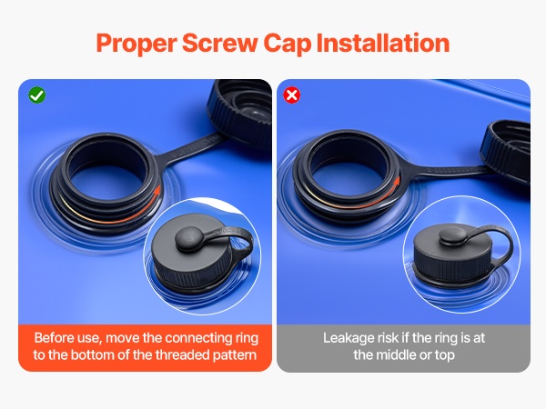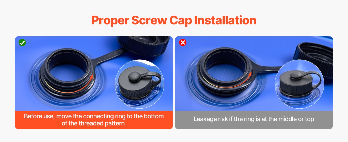 Tiiviin sulun varmistamiseksi liu’uta lukitusrengas kokonaan kierteiden tyveen ennen pussin täyttämistä. Virheellinen sijainti voi aiheuttaa vuotoja tai pussin liikkumista käytön aikana.