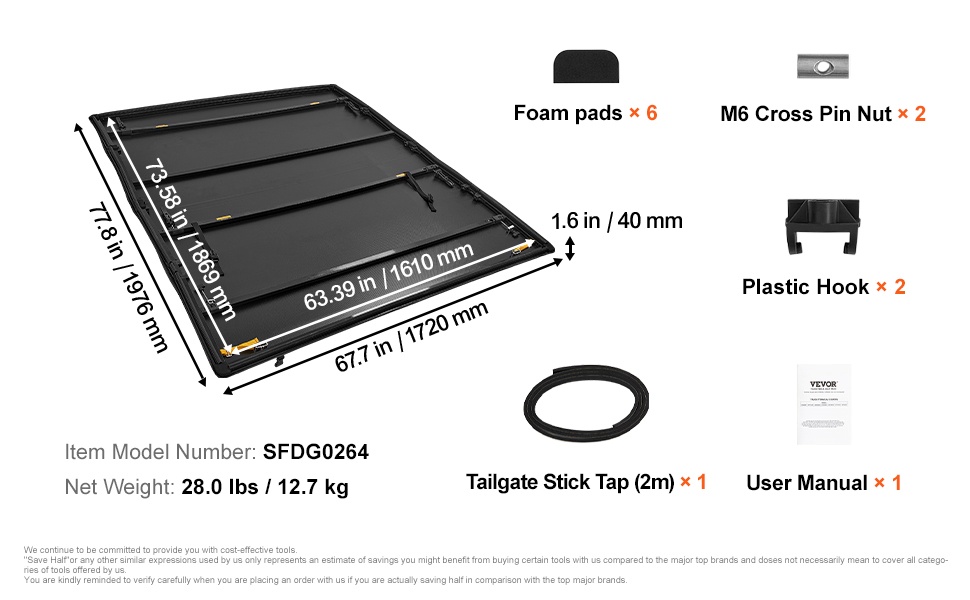 Peite on räätälöity sopimaan Ram 1500 -pickupin Fleetside 5.7' (67.4") -lavalle ilman Ramboxia. Peite kattaa lavan reunasta reunaan ja sulautuu auton ulkonäköön.