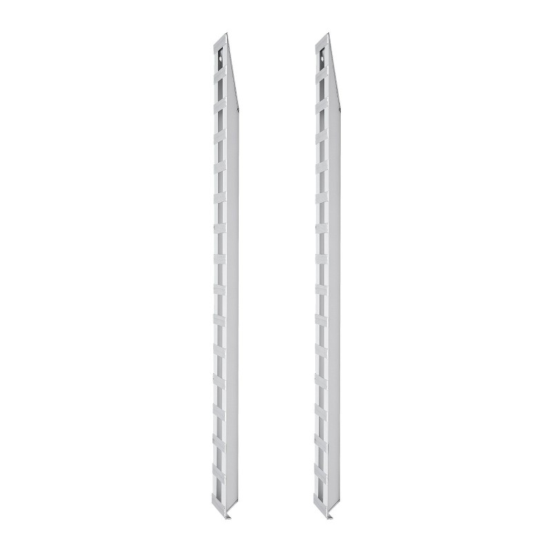 Rampit on valmistettu vahvasta alumiiniseoksesta, jossa on vahvistetut poikittaispalkit ja tukiputket. Rakenne on suunniteltu kestämään vaativaa käyttöä ja toistuvaa kuormausta ilman, että lujuus tai vakaus heikkenee.