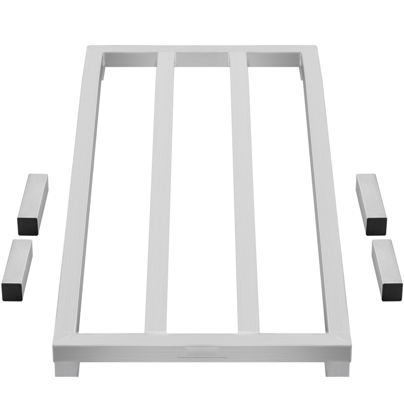 Alumiininen lattiatason säilytysteline, jonka kantavuus on jopa 1800 lbs / 817.2 kg. Korkeus lattiasta on 8 tuumaa, joten tavarat pysyvät irti lattiasta ja paremmin suojassa lialta ja kosteudelta. Sopii ammattikeittiöihin, ravintoloihin, varastoihin, autotalleihin ja ajoneuvoihin.