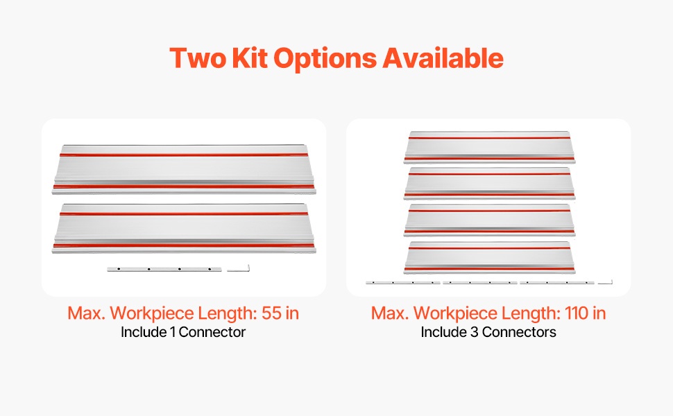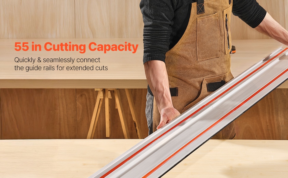 Tämä kiskosahan ohjainkisko mahdollistaa suorat ja tarkat pitkät leikkaukset jopa 2794 mm pituuteen asti. Pakkaus sisältää 4 kpl 699 mm alumiiniprofiilisia ohjauskiskoja ja 3 liitintä, joilla voit muodostaa eri pituuksia projektin tarpeen mukaan. Järjestelmä sopii yhteen useimpien kiskosahojen kanssa, kuten Makita, Festool ja WEN, ja se on suunniteltu vaivattomaan ja toistettavaan puuntyöstöön.