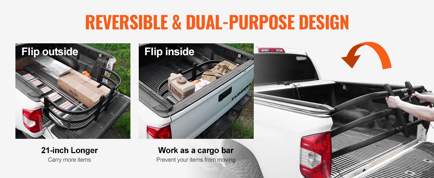 Tämä alumiininen perälaudan jatke lisää avolava-auton kuormatilan pituutta ja auttaa pitämään kuorman paremmin paikoillaan. Säädettävä pituus ja kääntyvä rakenne tekevät käytöstä joustavaa erilaisille kuormille, kuten tikapuille, puutavaralle, kajakeille ja UTV-ajoneuvoille.