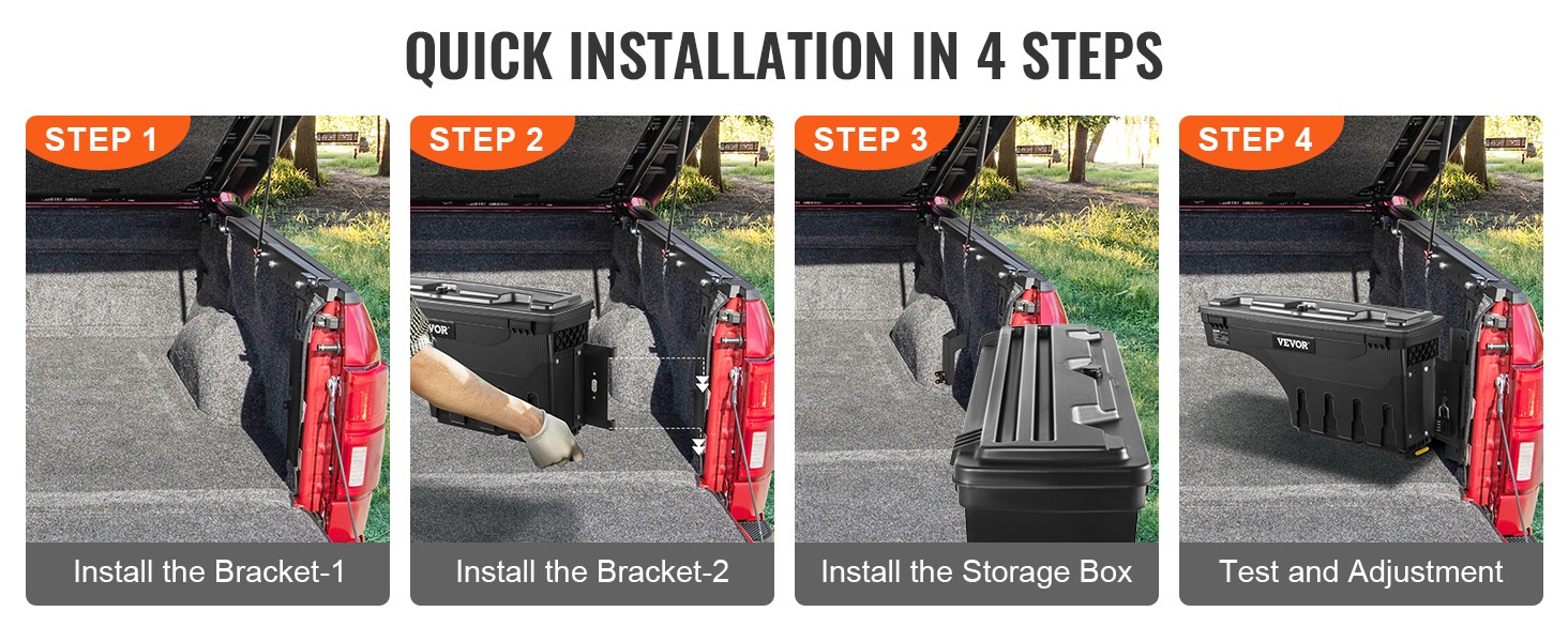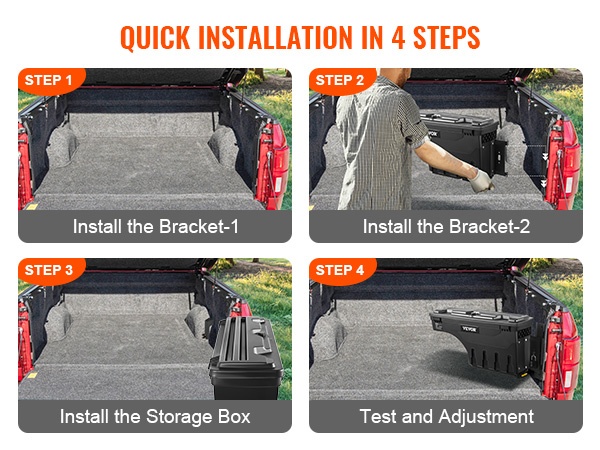 Tämä alumiininen työkaluarkku tarjoaa 3.56 kuutiojalkaa (101 L) säilytystilaa ja integroidun askelmatason, joka kestää jopa 220 lbs / 100 kg kuorman. Se asennetaan lavan sivulle, jolloin työkalut ja tarvikkeet ovat nopeasti ja helposti saatavilla ilman ohjaamoon nousemista.