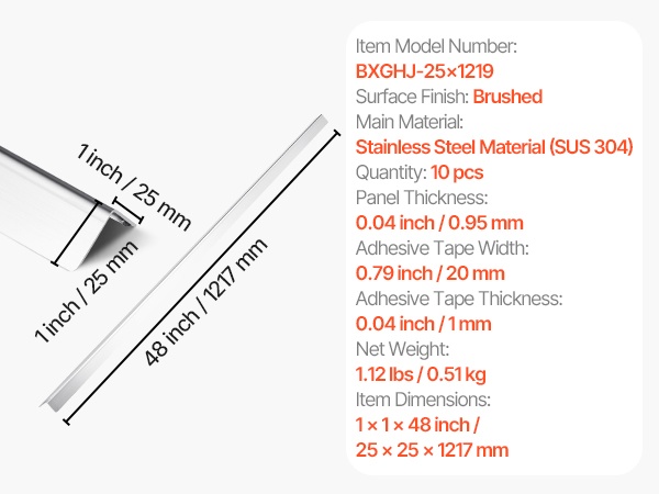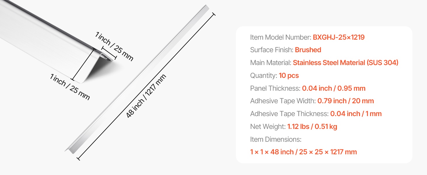 - Mitat (yhden kulmasuojan): 2 x 2 x 48 inch / 50 x 50 x 1217 mm