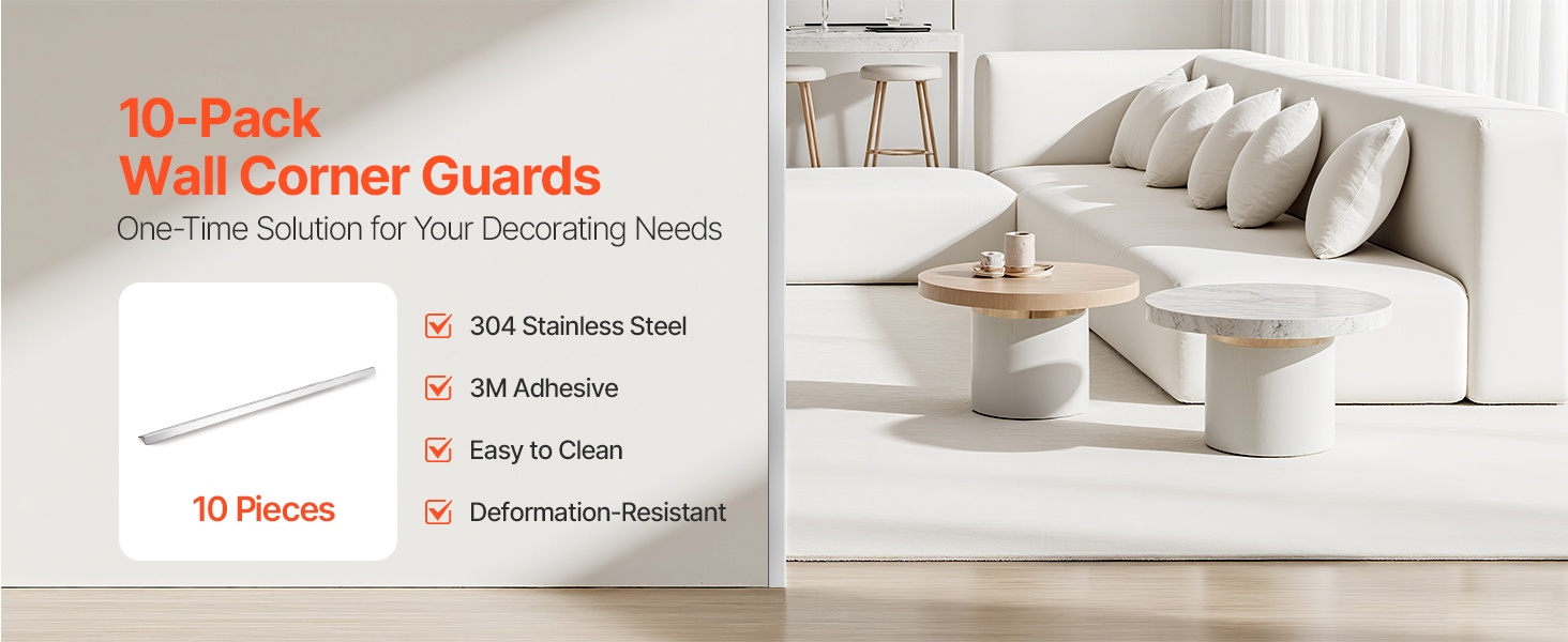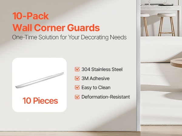 Tämä metallinen seinän kulmasuoja suojaa kulmia kolhuilta ja kulumiselta ja viimeistelee samalla kodin, toimiston tai julkisten tilojen ilmeen. Tarkka 90 asteen L-muoto ja valmiiksi asennettu teippi tekevät asennuksesta nopean ja siistin.
