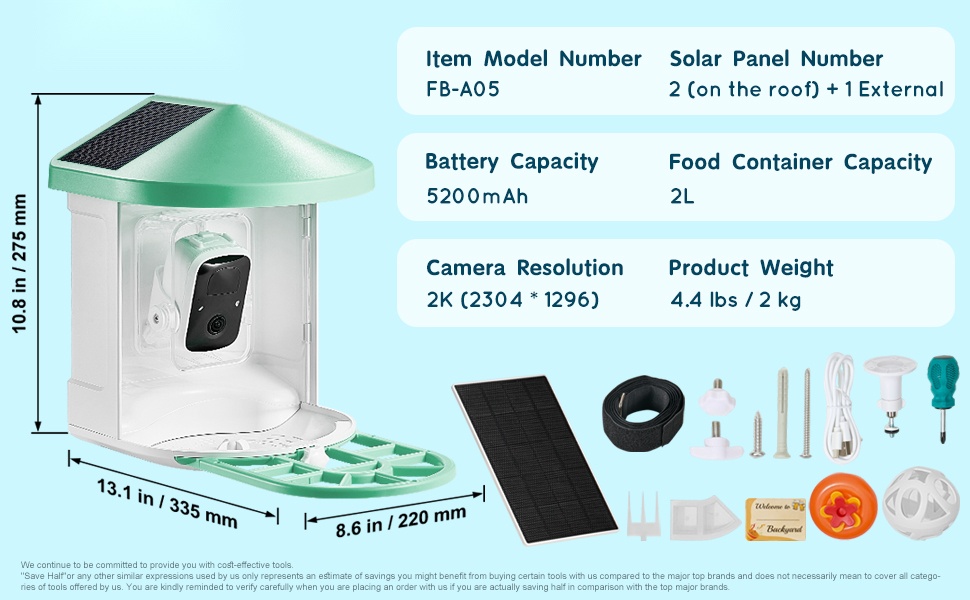 Älykäs ulkolintulauta 2K kameralla 145 asteen laajakulma täysvärinen pimeänäkö 2L ruokasäiliö aurinkopaneelilla