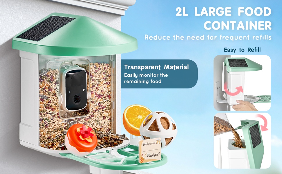 - 2L ruokasäiliö vähentää täyttökertoja ja helpottaa ruokamäärän seurantaa
